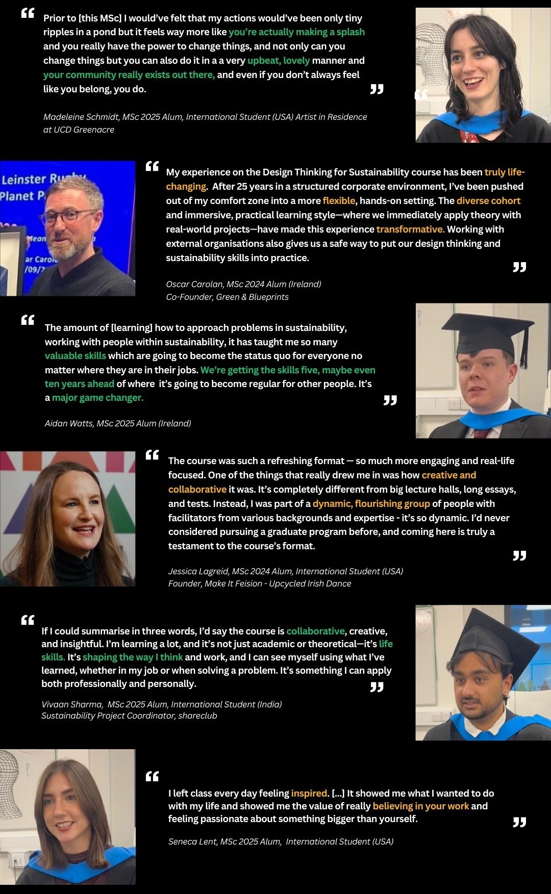 The MSc Design Thinking for Sustainability is a UCD accredited programme and a Level 9 MSc (90 ECTS).